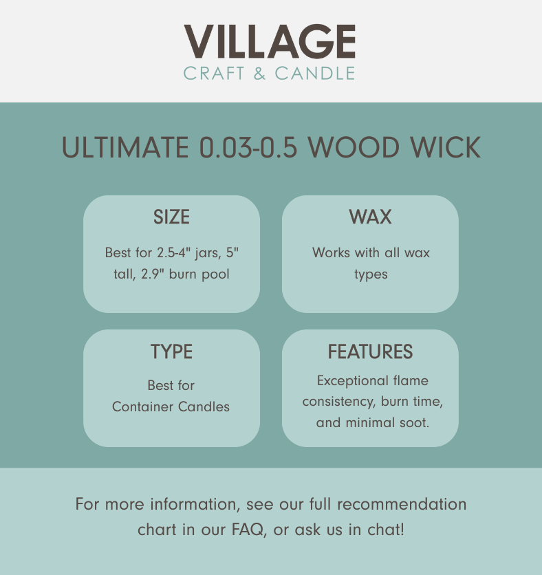 Note: See our resource article on Choosing the right wick. We cannot guarantee any certain wick to work in your application, as there are many variables involved. You must test burn your candles to determine the best wick for your combination of vessel size, wax type, fragrance oil, and dye. Please utilize our Wick Explore Kits to help you find the optimal wick for your application.